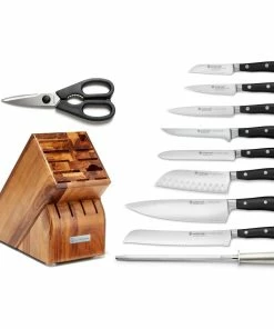 - Durable, forged high-carbon stainless steel blade construction