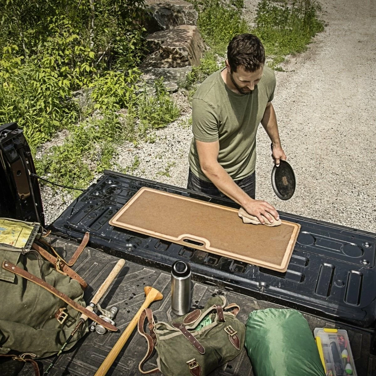 Turn the tailgate or a picnic table into a prep station with this 47.5” x 19.5” Big Game Board by Epicurean. This giant cutting board has a juice groove on one side and is smooth on the other, all while offering more than 500 square inches of work surface. This board is made of a wood-fiber material that won’t crack or split, is knife-friendly, and heat-safe to 350°F. Because it’s non-porous, it won’t ever harbor bacteria, so you can safely use it to filet trout, give it a quick wash, and then use it to serve food for the whole camp. Simple, functional, and built to last; this huge board is an outdoor kitchen/camping essential.