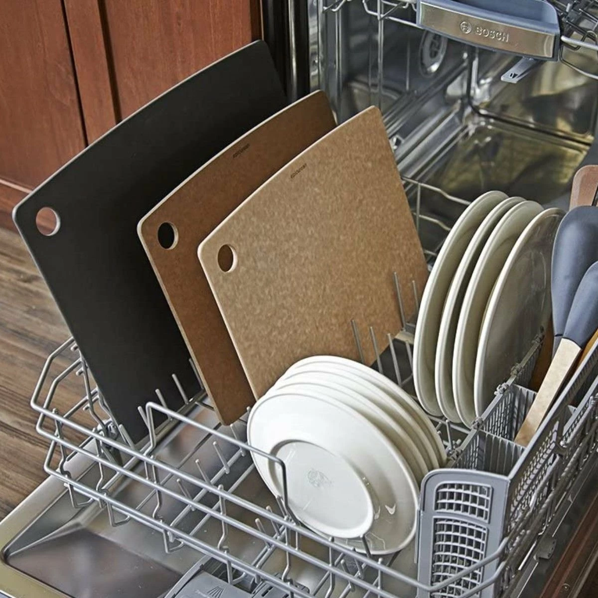 Any chef or home cook needs a good, trustworthy cutting board. And for the eco-conscious cook, an environmentally friendly board is even better! So with the Slate Kitchen Series 8″ × 6″ Cutting Board from Epicurean, you can get an environmentally friendly cutting board that will still last under pressure! The Epicurean Kitchen Series cutting boards are made for easy everyday use and effortless handling. The added, built-in thumb hole makes for easy serving and storing! Made of sturdy, nonporous wood fiber composite material, this cutting board features a knife-friendly surface that won’t dull your blades or cause unnecessary wear and tear. In fact, this cutting board is made so durable, it’s material can withstand temperatures of up to 350°F! The board, made proudly in the USA, is also eco-friendly, so you don’t feel guilty when you buy it! It’s made with multiple layers of Forest Stewardship Council (FSC) certified wood fibers compressed tightly together into a thin but strong composite. The board is double-sided, meaning both the top and bottom surface are suitable for any chopping job. And when it’s time to wash your board itself, it’s as easy as throwing it in the dishwasher. You shouldn’t settle for less when it comes to investing in a good cutting board. Get a board you can really trust! Order your very own Slate Epicurean Kitchen Series 8″ × 6″ Cutting Board today!