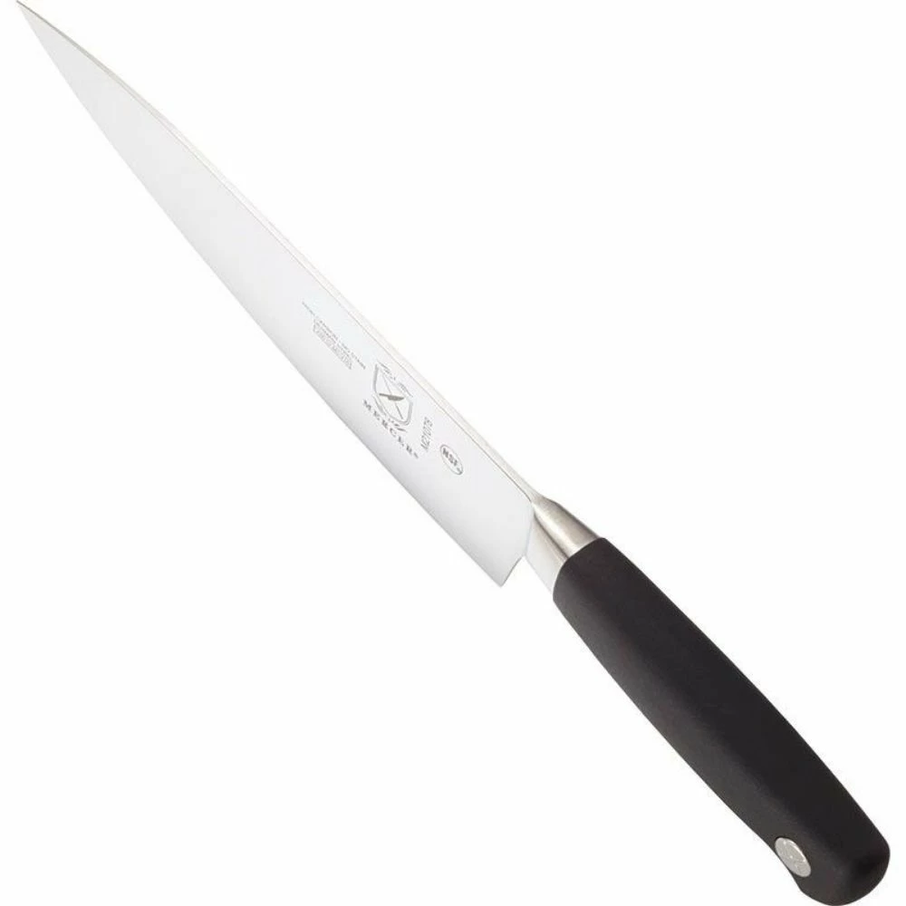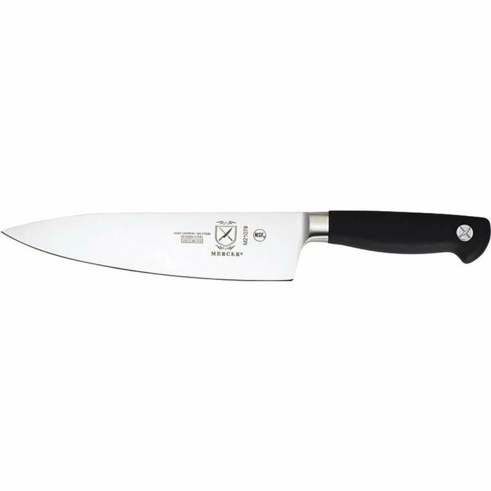 If you need a go-to knife in your kitchen, look no farther than the Mercer Culinary Genesis 8” Short Bolster Chef’s Knife. A chef’s knife is an integral part of any cutlery collection, perfect for completing any number of tasks, from chopping up ingredients to stripping herbs. The Mercer Genesis chef’s knife is made of high-carbon stainless steel that resists rusting, corrosion, and discoloration. The blade is taper-ground to keep its edge for longer than traditional blades. The Mercer Genesis blades all feature a tang for perfect balance and easier cutting. The shortened bolster allows for use of the full blade. Don’t settle for average blades, get the precision forged 8” Chef’s Knife from Mercer today!