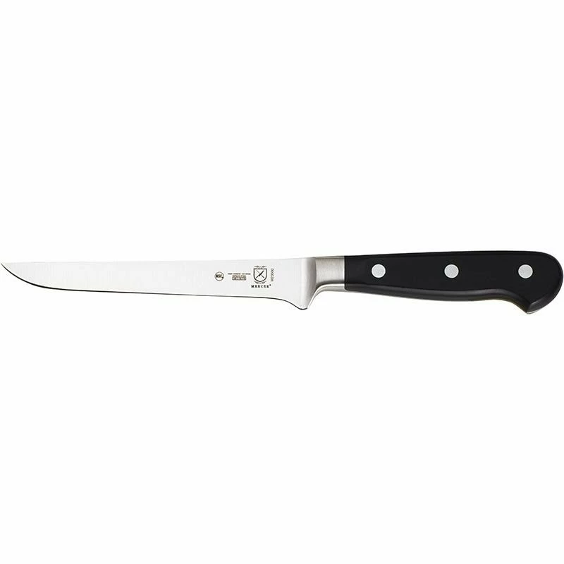 As part of the Mercer Renaissance collection, these knives are each precision-forged from a single piece of high-carbon German steel. They feature a full tang for superior balance and a shortened bolster to make sharpening and honing easier. If you are looking for high-quality knives to build up your cutlery collection, look no farther than the 6-Piece Knife Block Set from Mercer Renaissance. Get yours today!