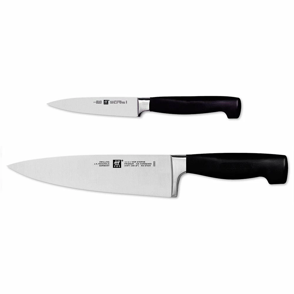 Meal prep will be a breeze with the help of this Zwilling J.A. Henkels Four Star 2pc “Must Haves” Knife Set. This “Must Haves” Knife Set includes an 8” Chef’s Knife and a 4” Paring Knife ideal for chopping, dicing, and peeling. With the “Must Haves” motion, meal prep will be quick and easy which gets those delicious recipes from grocery bag to tabletop in no time at all.